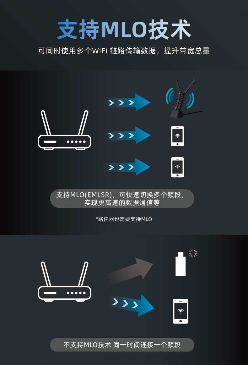 MT-WN6500BE是一款支持802.11BE协议的三频WiFi7 USB无线适配器