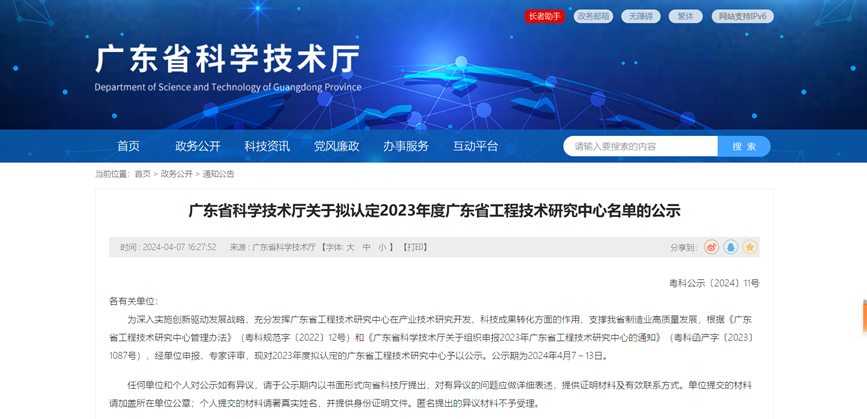 沐鸣2电子成功认定2023年广东省工程技术研究中心