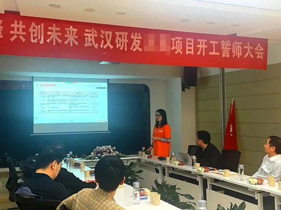 授旗领命,誓师动员。4月28号,沐鸣2电子武汉研发中心承接的国内某网通TOP客户首个 WiFi7 项目开工誓师大会在武汉未来科技城如期举行。客户莅临现场参加项目开工誓师大会。